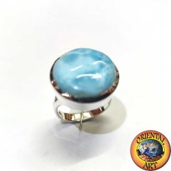 Raro e prezioso anello con Larimar tondo in Argento 925. Il Larimar, con il suo incantevole colore che ricorda le acque dei Caraibi, è simbolo di calma, serenità e armonia. Si tratta di un pezzo unico artigianale, un gioiello irripetibile dal fascino senza tempo. Perfetto per chi cerca eleganza e benessere spirituale.