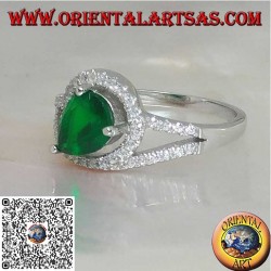 Anello in argento con smeraldo sintetico a goccia incastonato...