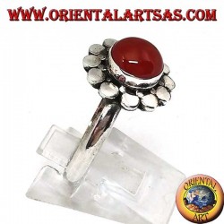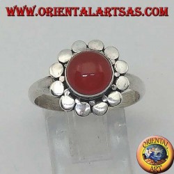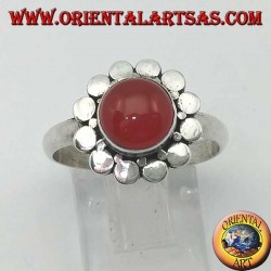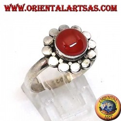 Anello in argento con corniola tonda a Cabochon contornata da borchie