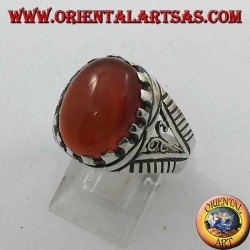 Anello in argento (da uomo) con corniola ovale piatta