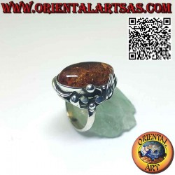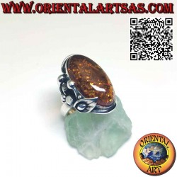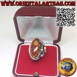 Bellissimo anello con Ambra Baltica ovale grande e fior di giglio sul lato realizzato in argento 925 ‰ anallergico. La superficie è parzialmente brunita e non è trattata né placcata quindi garantisce la sua bellezza col passare degli anni.