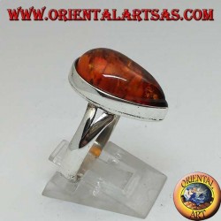 Anello in argento con ambra ovale allungata contornata da...