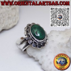 Anello in argento con turchese tibetano antico ovale contornato da...
