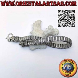 Realizzato artigianalmente in Thailandia con design etnico. La superficie è parzialmente brunita per mettere in risalto la decorazione, e non è trattata né placcata quindi garantisce la sua resistenza al trascorrere del tempo e la sua splendezza.