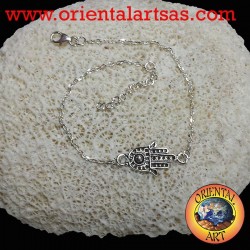 Bracciale in argento morbido a catenina con mano di fatima con...