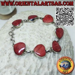 Bracciale realizzato in argento 925‰ anallergico senza nichel con 7 cuori di madrepore rosse (corallo) incartonare