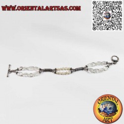 Scopri l’eleganza senza tempo di questo bracciale in argento con perle di fiume e cristallo di rocca, un gioiello raffinato che unisce la purezza delle perle naturali alla brillantezza trasparente del quarzo ialino. Realizzato artigianalmente, presenta una doppia fila di cristalli e un elemento centrale di perle luminose, valorizzati da dettagli in argento lavorato che donano un fascino ricercato e unico. Perfetto per chi cerca un accessorio elegante e versatile, ideale per cerimonie, look quotidiani e regali speciali. Aggiungi lucentezza e stile al tuo outfit con un bracciale prezioso e intramontabile.