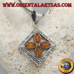 Ciondolo in argento a forma di rombo dai lati convessi con ambra...