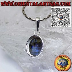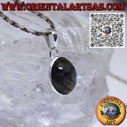 Ciondolo argento con labradorite ovale naturale incastonata con una montatura a bordo alto e liscio.