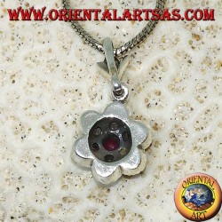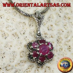 Ciondolo in argento con 5 rubini naturali a navetta + 1 tondo a...