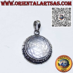 Ciondolo in argento con Sri Yantra inciso su cristallo di rocca 18 mm.Ø,