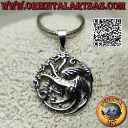 La Casa Targaryen è una casata nobiliare facente parte del mondo della saga fantasy Il Trono Di Spade di George R. R. Martin. Il loro stemma è un drago a tre teste di colore rosso in campo nero; si dice che il drago a tre teste rappresenti simbolicamente Aegon I e le sue sorelle. Il motto ufficiale della dinastia Targaryen è in inglese "Fire and Blood" in italiano "Fuoco e Sangue". Gioiello in argento 925‰ anallergico. La superficie è parzialmente brunita e non è trattata né placcata quindi garantisce la sua bellezza col passare degli anni.