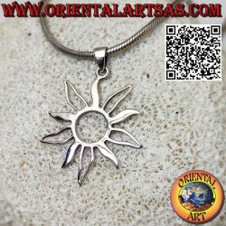 Questo ciondolo artistico cattura la forza vitale dell'astro solare attraverso un design moderno e dinamico. Realizzato in solido Argento 925, il gioiello presenta un cerchio centrale vuoto da cui si sprigionano raggi fiammeggianti che si alternano tra profili lineari e forme piene. Questa lavorazione traforata crea un affascinante gioco di luci e ombre sulla pelle, rendendo il pendente leggero ma di grande impatto visivo. Il sole, simbolo universale di vita e verità, rende questo accessorio un amuleto solare perfetto per chi desidera portare con sé un segno di calore e ottimismo.