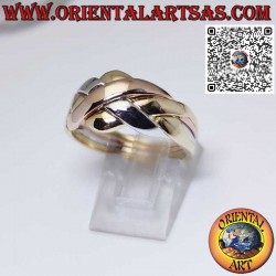 Elegante anello Fede Turca in oro 18 carati, intrecciato nei tre colori dell’oro: giallo, rosa e bianco.