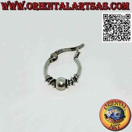 Orecchino a cerchio con chiusura a leva in argento, pallina e serpentina