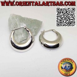 Orecchini in argento a forma di cerchio a mezzaluna liscio larga da 25 mm Ø con chiusura a leva ,realizzato in argento 925 ‰ anallergico, senza nichel