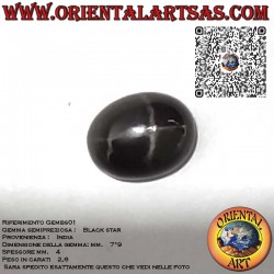 Rara gemma Black Star Diopside Naturale di forma ovale cabochon (7x9 mm). Questa pietra scura è celebre per la sua stella a quattro raggi (asterismo) che appare sotto la luce diretta. Ideale per la creazione di gioielli unici.