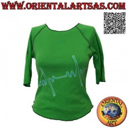 Maglia free size con collo a taglio vivo, maniche corte e fantasia (verde)