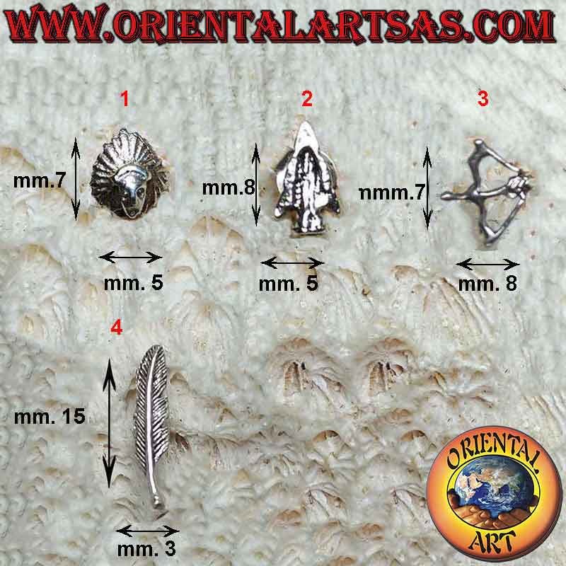 Mini orecchino in argento, i simboli dei nativi d'america (indiano, arco e freccia, piuma)