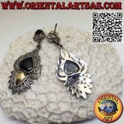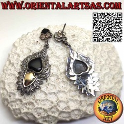 Bellissimi grandi Orecchini in argento 925 , con onice a forma cuore sovrastante piastrina a forma scudo in oro e contornata da marcassite. Realizzato da un bravissimo orafo Thailandese utilizzando marcassite Svizzera e materie di prima qualità.