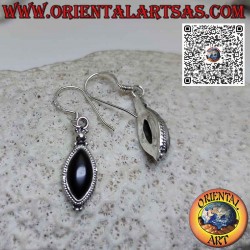 Bellissimi orecchini in argento con onice a navetta contornata da treccia e sfere, realizzati a mano da abili artigiani in solido argento 925 ‰ anallergico la superficie è parzialmente brunita non è placcata quindi garantisce la sua bellezza ed il suo fascino col passare degli anni. senza nickel