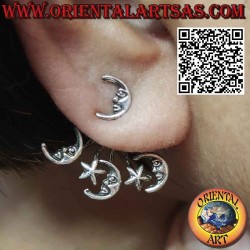 Orecchino rampicante (climber) a ventaglio, la luna e la stella realizzato in argento 925‰ anallergico realizzato artigianalmente stelle e lune . La superficie è brunita per mettere in risalto la decorazione , e non è trattata né placcata quindi garantisce la sua bellezza col passare degli anni.