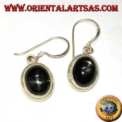 Orecchini in argento con labradorite a ovale naturale, bordo ad anello