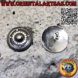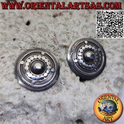 Orecchini in Argento a scudo da lobo, realizzati artigianalmente in Indonesia interamente in solido argento sterling 925 ‰. La superficie è parzialmente brunita e non è placcata, garantendo così la sua bellezza negli anni.