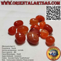Quando la corniola è arancione, è la pietra della vergine, cioè di coloro che sono nati tra il 22 agosto e il 22 settembre. Quando è più torbida, è la pietra dei nati sotto il segno della bilancia, tra il 23 settembre e il 21 ottobre. Infine, quando la corniola tende al colore del mattone, protegge e dona forza a coloro che sono nati sotto il segno dello scorpione tra il 22 ottobre e il 20 novembre.