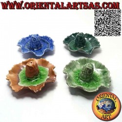 Bruciatore per incenso a bastoncino realizzato da artigiani thailandesi in ceramica dipinta e vetrificata