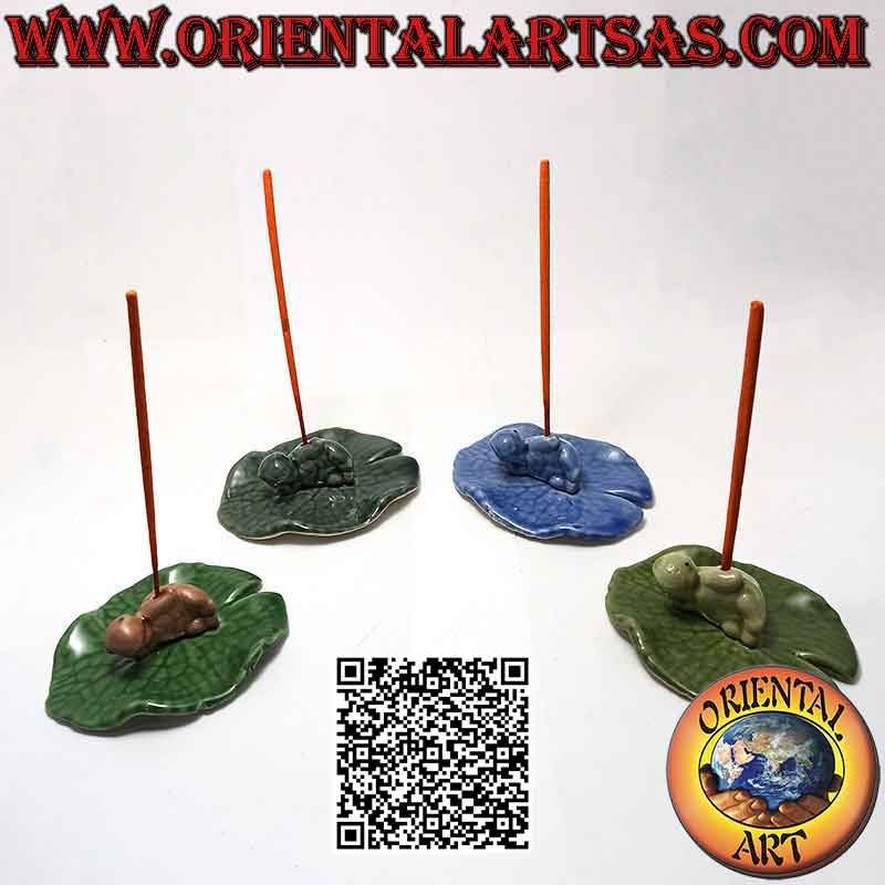 Brucia incenso "tartaruga stesa di profilo" nella foglia in ceramica dipinta