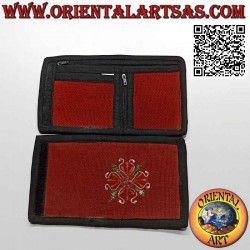 Portafogli nepalese (4 tasche con 2 zip) "decorazione floreale" in 100% cotone