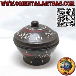 Antica scatola tonda in legno pregiato e intarsi in madreperla (Lombok)