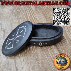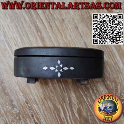 Antica scatola tonda con base in legno pregiato di mogano con intarsi in madreperla fatta a mano in Indonesia nell' isola di Lombok pezzo unico