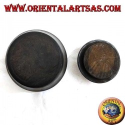 Scatola portagioie tonda in legno di mogano con piastra di alpacca...