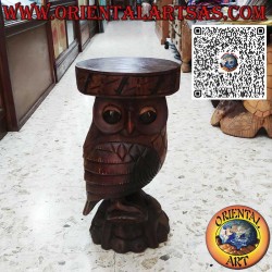 Una scultura a forma di gufo con un piano d'appoggio integrato, realizzata in un unico blocco di legno di Suar e con un'altezza di 50 cm, è un oggetto decorativo artigianale che unisce estetica e funzionalità. Ecco alcune informazioni e considerazioni utili:
