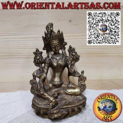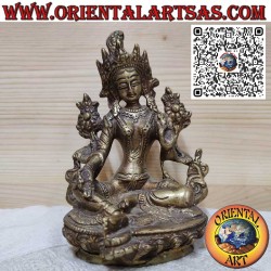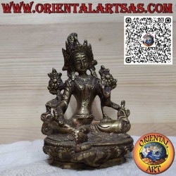 Tara in ottone lavorata a mano con dettagli finemente scolpiti è una statua artigianale che rappresenta questa divinità in una posa meditativa o benevola, realizzata in ottone – una lega dorata apprezzata per la sua resistenza e bellezza.