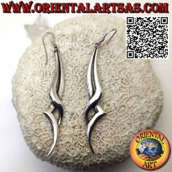 Elegante orecchini attorcigliato lungo ed elegante ( il fulmine) fatto a mano nell'isola di Bali da artigiani, realizzata in argento 925 ‰ anallergico. La superficie è parzialmente brunita per mettere in risalto la lavorazione e garantire la sua bellezza col passare degli anni. (l'orecchino non è trattato né placcato ma in solido argento) senza nickel