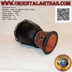 Il corpo del djembe è realizzato in legno di mogano proveniente da piantagioni sostenibili ed è interamente composto da prodotti naturali Essendo fabbricato da piccoli artigiani nelle condizioni più semplici (non un prodotto industriale), non si possono evitare lievi variazioni di colore del legno/pelle, così come le naturali irregolarità e le lievi differenze di colore.