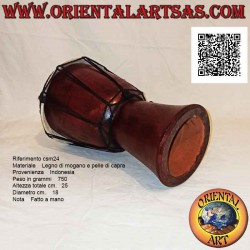 Il corpo del djembe è realizzato in legno di mogano proveniente da piantagioni sostenibili ed è interamente composto da prodotti naturali Essendo fabbricato da piccoli artigiani nelle condizioni più semplici (non un prodotto industriale), non si possono evitare lievi variazioni di colore del legno/pelle, così come le naturali irregolarità e le lievi differenze di colore.