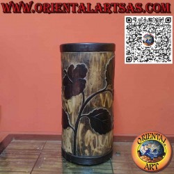 Portaombrelli cilindrico in legno realizzata a mano da artigiani locali specializzati nella lavorazione di legni pregiati. La scultura è composta da un unico blocco di legno scavato inciso e modellato ad opera d'arte. Pezzi unici ed inimitabili, soggetti floreali ad altorilievo
