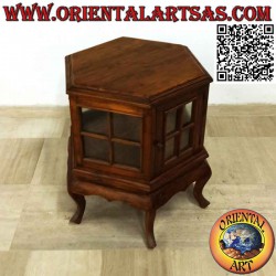 Tavolo bar a vetrina di forma esagonale con piedi stile Luigi XIV , realizzata in legno massello di teak a mano in Indonesia